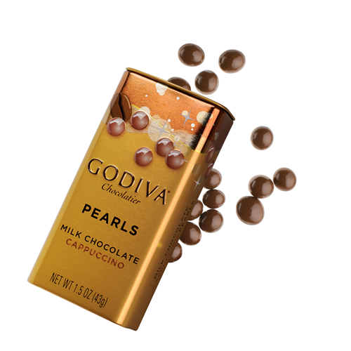 Godiva’s Chocolate Cappuccino Pearls deliver both pleasures combined in the ultimate grown-up indulgence. These small, smooth milk chocolate pearls are carefully laced with coffee, to create a creamy chocolate experience with the warmth and depth of flavour of a rich cappuccino.